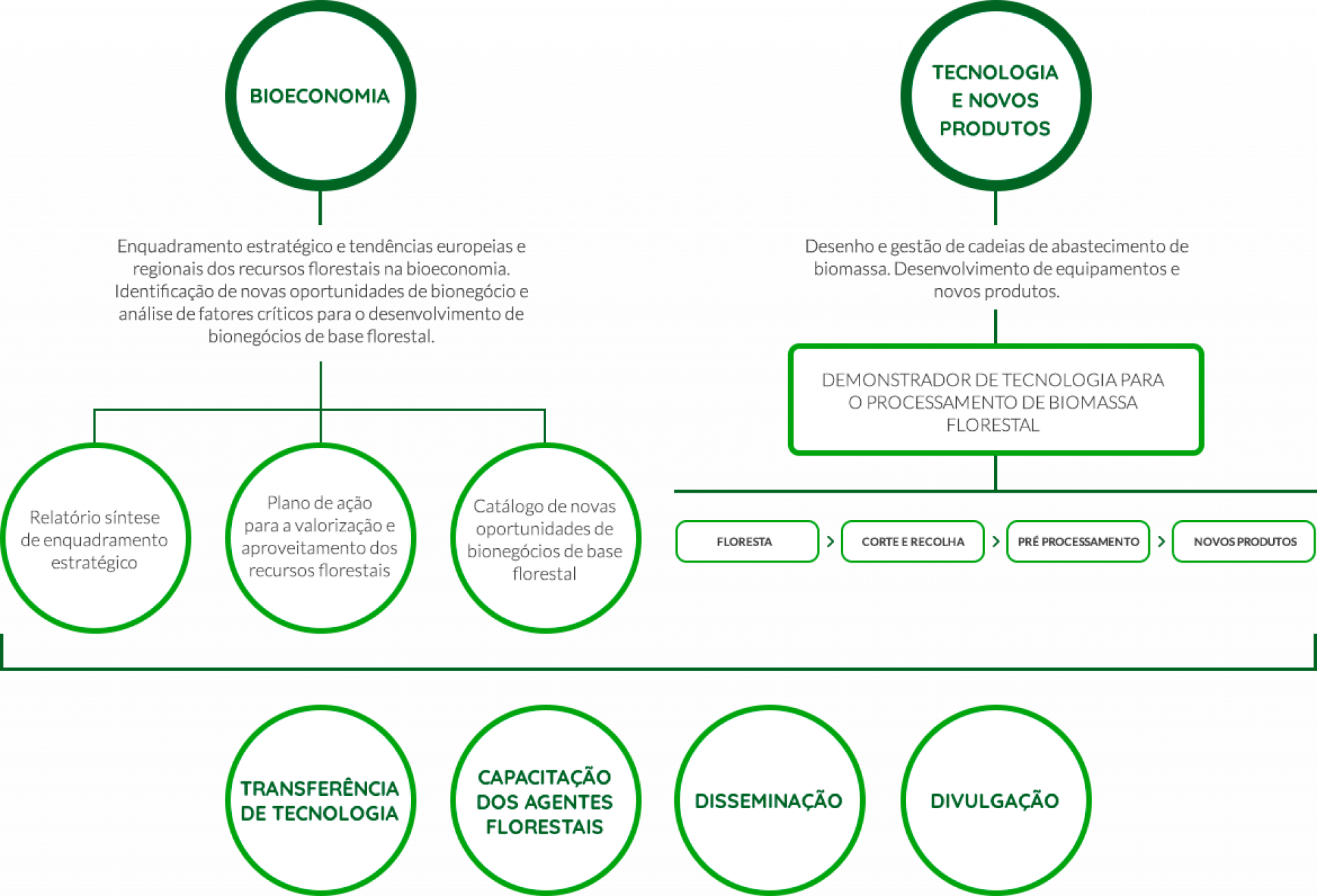 Esta operação tem como principal objetivo aumentar os níveis de eficiência na utilização dos recursos florestais, contribuindo para o desenvolvimento da bioeconomia e da economia circular no espaço transfronteiriço de cooperação Galiza – Norte de Portugal.